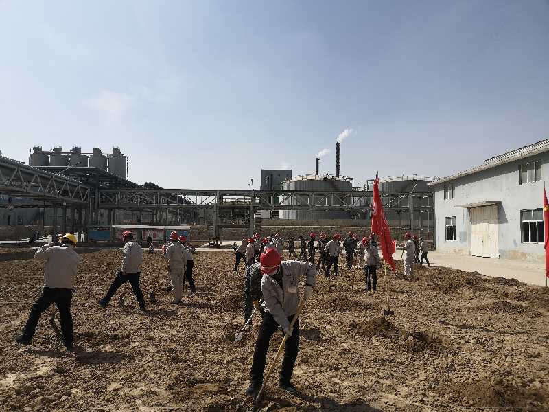 疫情防控下,黨員帶頭堅守一線不松懈;す军h支部書記賈存富帶頭奔赴綠化作業(yè)一線,組織各單位黨員對液化崗位土地進行平整,身體力行踐行“不忘初心,牢記使命”。
