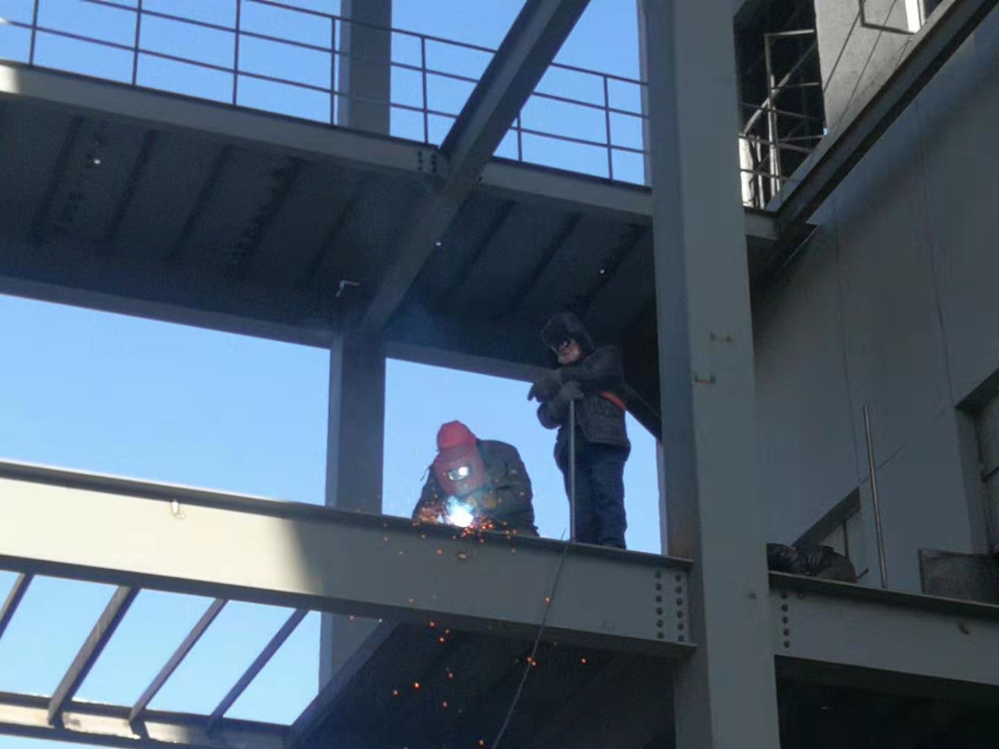 清晨的天,陰沉沉的。雖然跟前幾天比起來溫度有所回升,但呼呼的北風(fēng)還是讓人感覺寒冷。走進(jìn)技改現(xiàn)場,龐大的吊車正在吊裝作業(yè)。高高的原料輸送斜廊上幾個身影系著安全帶等待著彩板的到來。吊車旁邊的指揮者,穿著厚厚的棉襖,拿著對講機(jī),高高的仰著頭在觀察吊物情況,確保吊裝過程的安全。我抬頭仰望,數(shù)十米高的平臺上,幾個身影若隱若現(xiàn),隱約能看到他們的安全帽在鋼結(jié)構(gòu)后面來回躍動。