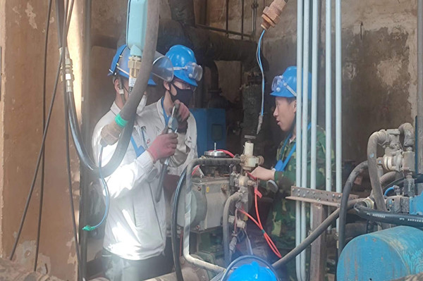 走進(jìn)每一個(gè)角落,我都會(huì)有一種“未見(jiàn)其人,先聞其聲”的感覺(jué),錘子的敲擊聲,檢修負(fù)責(zé)人的安全交底聲,還有噼里啪啦的雨聲,聲聲入耳,像是一首和諧的樂(lè)章。