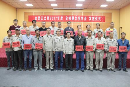 今年獲得獎學(xué)金的員工子女共有24名,向考取一本院校的11名員工子女每人發(fā)放獎學(xué)金3000元,考取二本院校的13名員工子女每人發(fā)放獎學(xué)金2000元,本次“金榜題名獎學(xué)金”共發(fā)放59000元。